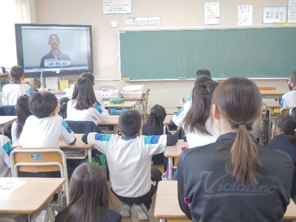 実際の避難行動に加え、自宅や職場からの避難経路の把握や安全性の確認など、命を守るために必要な行動を促しています。ヴィクトリーナ姫路の宮部藍莉選手を起用したポスターで事前に啓発を行い、当日は同選手からのビデオメッセージを上映し、生徒たちはプロ選手の呼びかけに耳を傾けながら、防災の重要性を学びました。