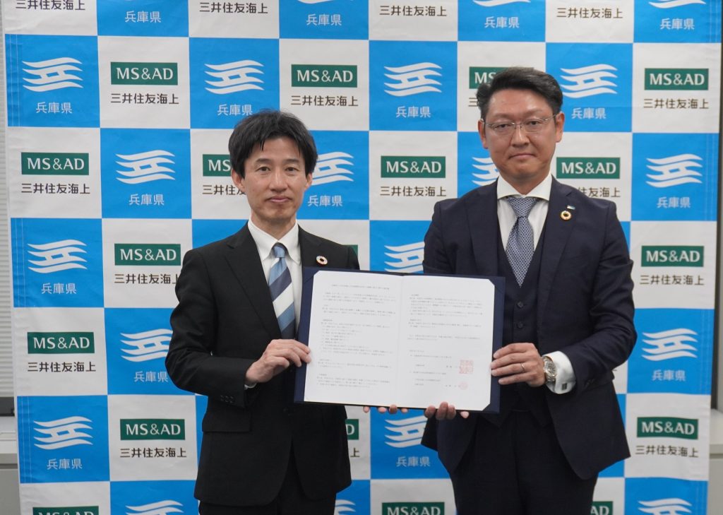 兵庫県は、「レジリエントでサステナブルな社会」を目指し、全国で自治体連携を幅広く展開する三井住友海上火災保険株式会社と包括連携協定を結びました。今後は、防災・減災の推進や交通安全の啓発、金融リテラシー教育の出前授業、スポーツイベントへの所属選手の派遣など連携して取り組んでいきます。