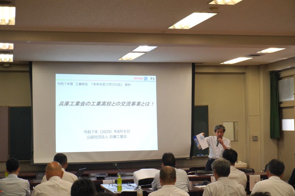 兵庫工業会は、兵庫県教育研究会工業部会主催の「令和7年度未来を担う学びの会」で、昨年度に引き続き講話を行いました。企業経営の視点から、「人材育成と組織づくりの実例」について、兵庫工業会会員である福伸電機株式会社(神崎郡福崎町)から、「人間力の育成」や「教育と現場のつながりこそが育成の鍵になる」などといったポイントを県内工業高校の教職員(45名)に伝えました。今後も兵庫工業会は、県内工業高校と連携し、次代の人づくりに向けた取組を展開していきます。